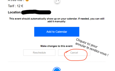 4/ Un mail de confirmation de l'annulation du rendez-vous est envoyé à vous ainsi qu'à moi.